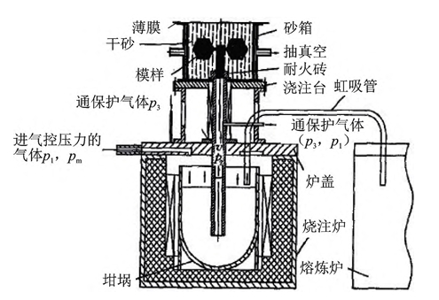 圖2 鎂合金真空低壓消失模鑄造技術原理圖