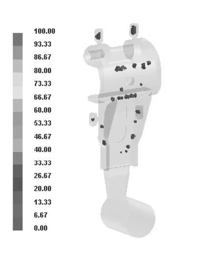 ![]() 半固態壓鑄具有成形溫度低、模具壽命長、鑄件凝固收縮小、性能優良等特點。然而,由于半固態流變壓鑄工藝設計中的問題,產品容易產生卷氣和縮孔、縮松缺陷。采用鑄造模擬軟件對A356鋁合金壓塊半固態壓鑄充型和凝固過程進行了數值模擬,分析了充型過程的流場和速度場,設計了3組半固態壓鑄工藝參數,并通過試驗確定了壓塊半固態壓鑄的最佳工藝參數,生產出合格的壓塊鑄件。 圖文結果 壓塊是一個結構相對簡單,壁厚不均勻的零件,壓塊三維圖見圖1。零件為曲面對稱結構;側面有一個直徑為9mm的盲孔,須采用側抽芯來成形;兩側壁與曲壁連接處,壁厚相差較大,容易產生應力集中,冷卻過程中易產生縮孔、縮松和熱裂等缺陷。在設計內澆口截面積時要比液態壓鑄的截面積大,其厚度一般為壓鑄件壁厚的50%左右。壓塊壓鑄件在設計時采用側澆口。根據計算得出內澆口橫截面積大小為52.5m㎡,厚度為1.5mm,寬度是鑄件邊長的0.7倍,為35mm。