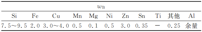 表1 A380鋁合金的化學成分(%)