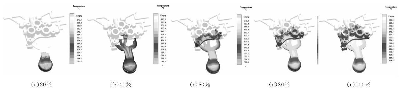 圖5 優化結構后鋁合金充型過程模擬