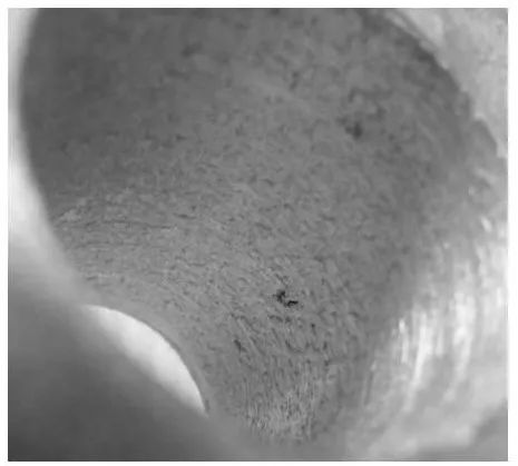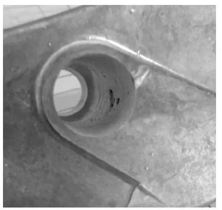 圖5 軸承孔位置氣孔缺陷 采用慢壓射壓鑄工藝的技術要點:1內澆口和排氣槽的截面積要比正常的壓鑄模適當加大;2調整好慢壓射速率,使其能在保證內部及外部品質的前提下以盡量低的速度緩慢壓射;3找準增壓位置轉換點,使金屬液在充滿型腔后立刻增壓,這樣才能保證型腔內氣體最大限度的排出并使鑄件在壓力下補縮;4適當提高合金澆注溫度及模具溫度。