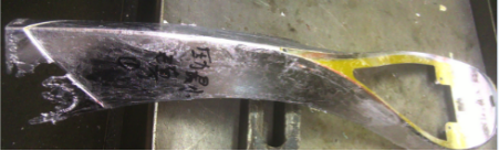 (a)定模部分 (b)動模部分 圖5為不同壓鑄條件下所獲得的S型鑄件。可以看出,在普通壓鑄工藝下,由于模具型腔內氣體未能及時排出型腔外,導致合金液在充填過程中,受到來自型腔內氣體的反向阻力,使液態合金未能填充滿S型鑄件的末端,鋸開產品橫斷面發現,產品斷面特征中殘留少量氣孔缺陷。在設計優化后的高真空壓鑄工藝下,由于模具外圍及模具型腔內的氣體在壓鑄前被抽離至高真空,因此,液態合金在填充過程所受阻力小,能順利填充整個S型鑄件,鋸開產品橫截面未發現有氣孔及縮松缺陷,產品截面特征的致密性較好。表4為不同壓鑄環境下所獲得的S型鑄件在拉伸試驗后,由WE-100液壓式萬能測試機測得的抗拉強度及WILSON-UH4250型萬能硬度計測得的硬度數據。 為進一步分析設計優化后的高真空壓鑄工藝對實際工程應用的適應性,圖6為壓鑄企業針對不同壓鑄環境實際試生產的長條形鋅合金壓鑄件。采用普通壓鑄工藝時,由于產品外形尺寸較大,壁厚較薄,合金液在填充過程中,模具型腔內氣體未能在充填時間內排出模外,導致合金液受到較大的反向填充阻力,使試制產品左下端出現填充不足的缺陷。采用高真空壓鑄工藝后,抽真空系統在壓鑄前先對模具型腔及密封箱抽真空,液態合金在高真空狀態下填充模具型腔時,充填過程反向阻力小,試制產品能順利的充填完整,見圖6b。可見,在普通熱室壓鑄機上通過設計優化實現的高真空壓鑄工藝能大幅提高壓鑄件的成形品質。