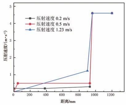 圖5 三種不同的壓射工藝曲線示意圖 采用SuperCAST智鑄超云分別模擬了三種不同慢壓射工藝(A 0.2~4.6 m/s、B 0.5~4.6 m/s、C 1.23~4.6 m/s)條件下料管內金屬液流動狀態,結果如圖6所示。方案A鋁液料管充填過程中運動呈波浪狀,鋁液出現翻滾現象,極易形成卷入性缺陷。同時,方案A鋁液在料管中留置時間較長且充填過程中金屬液體出現不規則波動,易導致鋁液熱量損失較多,并易使空氣進入金屬液體。方案B鋁液在料管充填過程中金屬液體出現不規則波動,容易使空氣和氧化夾雜裹卷入金屬液體。方案C鋁液在料管充填過程中界面前沿始終保持前傾狀態、波面運動平穩,沒有出現金屬液不規則運動,從而有效避免了將料管氣體卷入鋁液。綜上所述,方案A和B出現回流或翻滾現象易發生卷氣,同時金屬液溫度出現充填溫度較低和不均勻現象。方案C在料管中的運動平穩不易發生卷氣且金屬液溫度均勻。