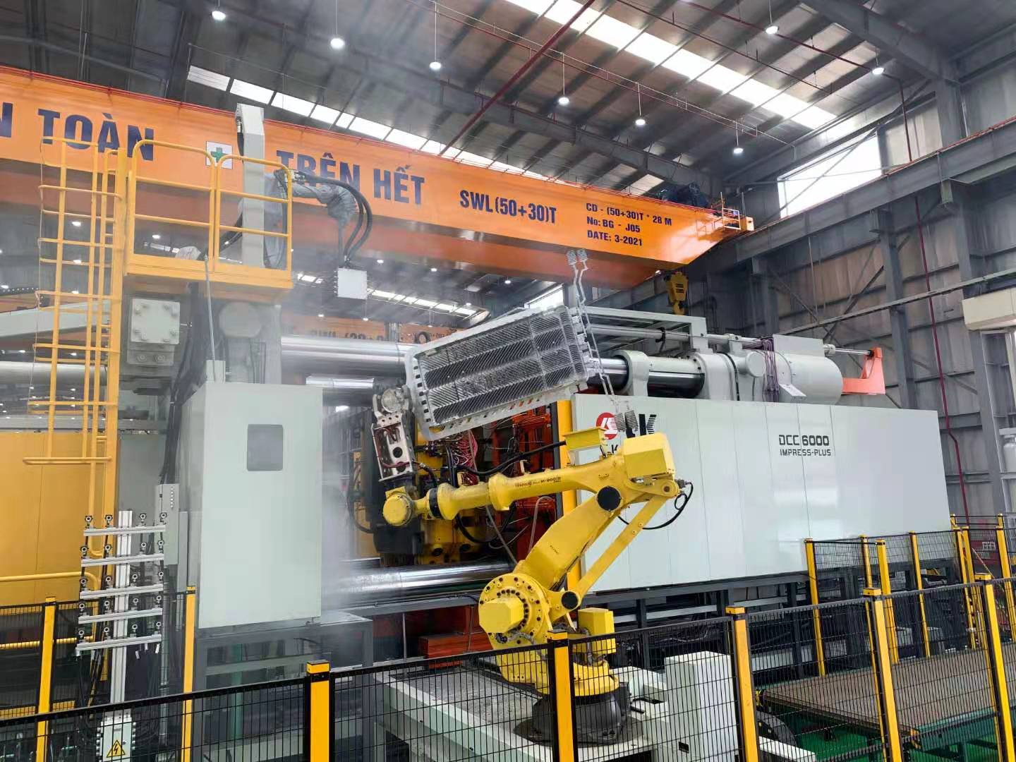 近日,又一臺力勁LK品牌6000T冷室壓鑄機,在客戶越南工廠正式投產(chǎn)。