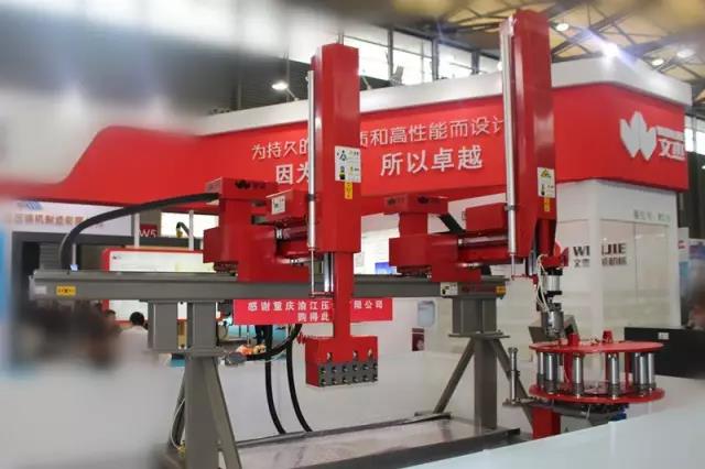 與此同時,WJC系列采用先進的設計方式,置于壓鑄機頭板之上,可最大程度節省空間;使用特殊設計的防堵功能噴頭;噴涂時有傳統機的效率,也具備機器人多角度、多點獨立操作的靈活移位性能;特殊設計的取件抓手,標配機型可適用于8個不同尺寸產品的抓取。WJC系列使用獨立電腦控制器,全中文操作界面,具有QC功能,設定N模取樣檢驗、手動取樣,自動運轉中隨機取樣,首件放棄功能,成型機不良品訊號聯機。