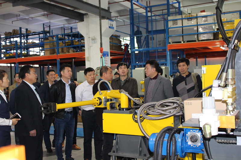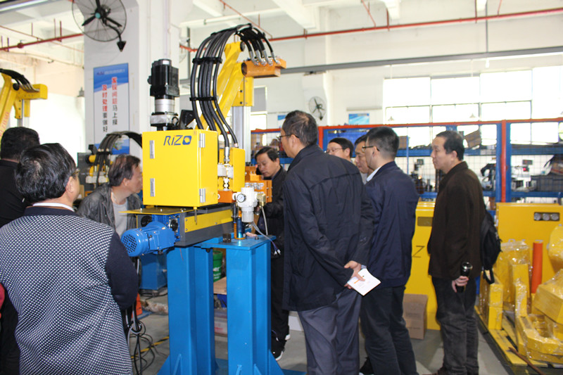 2018年3月10日上午,全國鑄造機械標準化技術委員會秘書長盧軍,國際標準化組織鑄造機械技術委員會秘書、濟南鑄造鍛壓機械研究所有限公司教授級高工丁蘇沛,全國金屬熱成形分技術委員會秘書長徐年生、副秘書長蔡恒志,以及全國金屬熱成形分技術委員會委員一行30余人,前往位于深圳市觀瀾高新技術產業園的深圳市日昭自動化設備有限公司參觀訪問。訪問團參觀了深圳日昭新工廠,并與公司總經理胡安喜及公司高層進行座談交流。 訪問團成員一行,先后參觀了深圳日昭的機加車間,壓鑄機械手裝配車間、線性機器人裝配車間、機器人壓鑄島開發中心、測試中心、倉儲中心。在機車間,加工中心、沖床等一批機加設備正緊張作業;在各成品裝配車間,深圳日昭的給湯機、冷/熱室取件機、噴霧機、噴取一體線性機器人、機器人集成壓鑄島等產品,讓來賓們應接不暇。而先進的倉儲物料系統則讓人印象深刻。