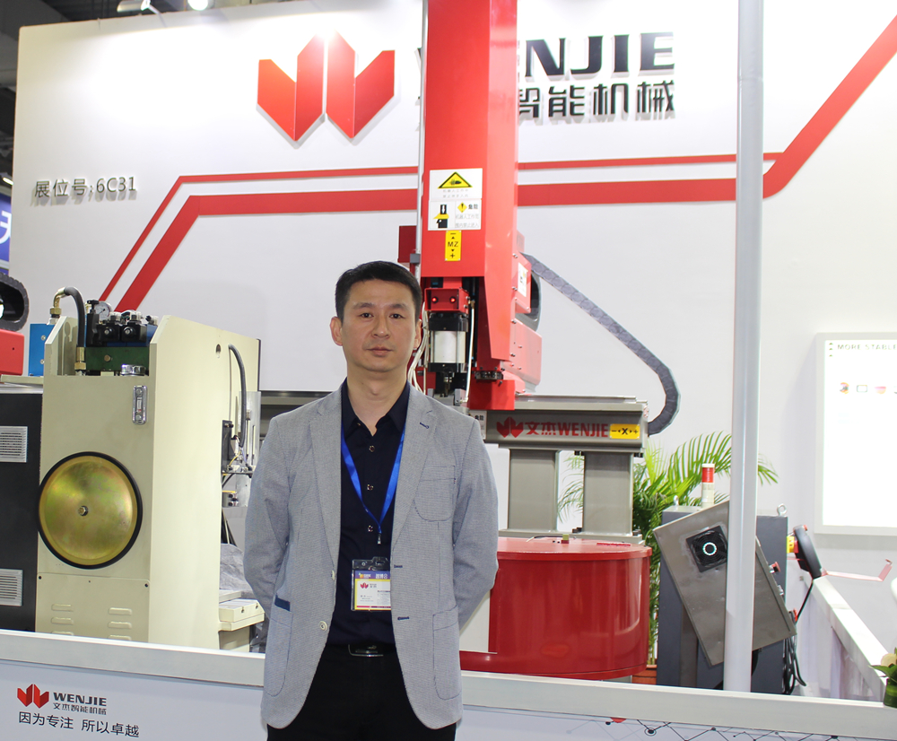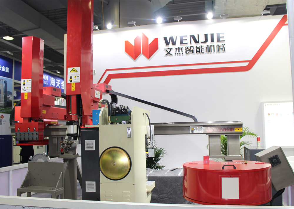 文杰智能董事長(zhǎng)楊杰先生 在本屆展會(huì)上,行業(yè)領(lǐng)先的壓鑄線性機(jī)器人制造商——佛山市文杰智能機(jī)械有限公司展示一款WJC-900雙臂線性機(jī)器人。WJC-900適用于中小型壓鑄機(jī),可應(yīng)用于壓鑄過程的噴霧、取件、冷卻、碼垛、鑲嵌、沖邊等多種工序。WJC系列是文杰智能正式推出市場(chǎng)的第二代線性機(jī)器人,是公司多年的潛心力作和技術(shù)結(jié)晶,具有高效能識(shí)別、伺服驅(qū)動(dòng)兩大特點(diǎn),工作效率更高,負(fù)載更大,移動(dòng)速度更快、精度更高。 據(jù)介紹,WJC擁有兩個(gè)移動(dòng)臂,最大負(fù)載可達(dá)75公斤,并具快速而且精準(zhǔn)優(yōu)點(diǎn),標(biāo)準(zhǔn)規(guī)格的機(jī)器人移動(dòng)速度最快可達(dá)每秒2.5米,中小型線性機(jī)器人位置公差為正負(fù)0.05毫米,大型線性機(jī)器人正負(fù)0.15毫米。