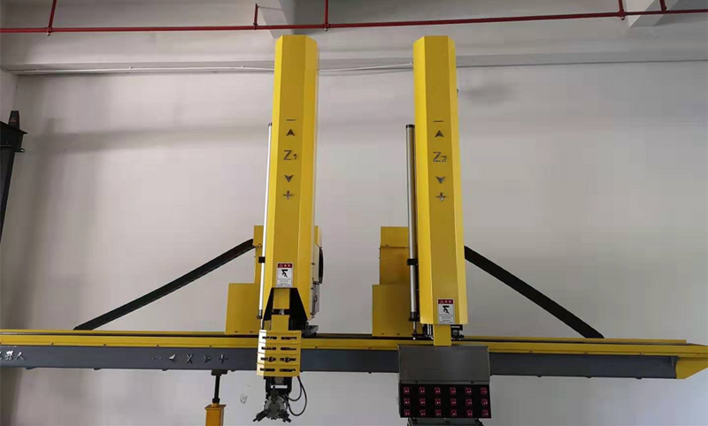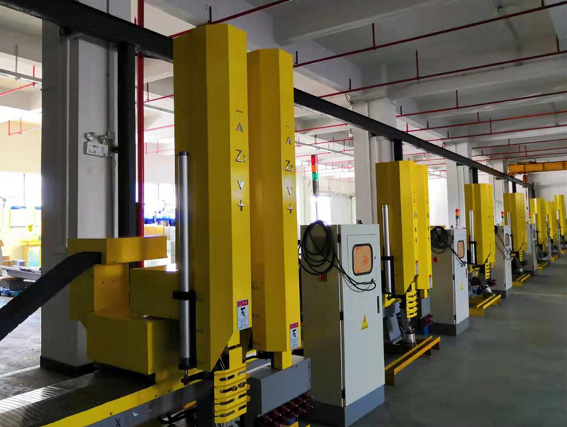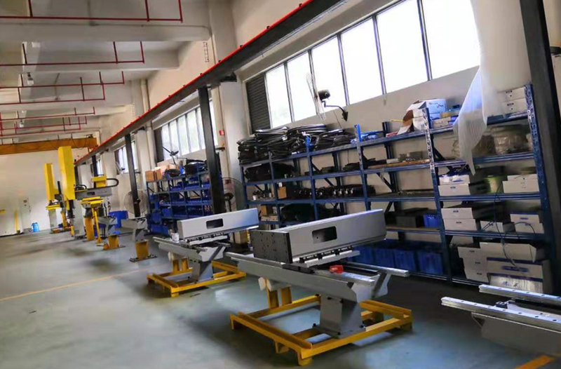 碩尼智能工廠裝配區 據介紹,碩尼智能公司開發的壓鑄線性機器人,性能更加耐用,高效,節能,安全的優勢,同時具有速度快,位置精準的優勢,標準機速度移動速度可達到2.5m/s,位置精準可控制在±0.05mm;中文版人機觸摸屏,手持式控制器,機臺狀態實時監控和故障自診顯示功能;配置自主設計的取件手、防堵噴頭;機臺防護等級達IP65,具有很好的防水、防塵、防高溫、防腐蝕等功能。SN1采用四軸伺服控制,SN2采用六軸伺服控制,取件軌跡在上下、左右、前后六個方位同步運行,降低取件難度。