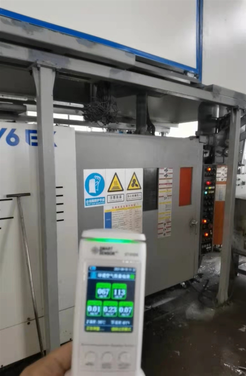 沒裝壓鑄油霧凈化機的車間空氣質量情況 蒲昌月先生補充說:“此外,該套壓鑄島還配置了德琺麒的壓鑄油霧凈化機,使得生產車間PM2.5遠低于國家標準的75微克/立方米、PM10低于國家標準的100微克/立方米,達到室內排放標準水平,車間環境優良。”據介紹,廣州德琺麒的壓鑄油霧凈化機具有超低能耗,2500T以下不超過4.5千瓦;全系列帶自動清洗功能,外部可視窗設計;無過濾材料等耗材,不產生二次固廢等諸多優勢。 |