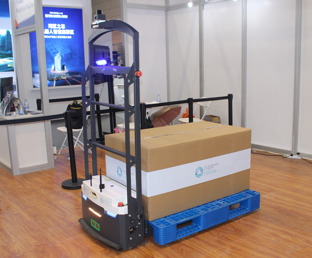 藍(lán)因背負(fù)型機(jī)器人 藍(lán)因機(jī)器人公司總經(jīng)理陳卜銘先生介紹說:“藍(lán)因背負(fù)型機(jī)器人,配備了高精度的傳感系統(tǒng)(包括多個(gè)攝像頭和雷達(dá)),探測能力強(qiáng),可敏銳避開障礙物。機(jī)體設(shè)計(jì)緊湊,使機(jī)器人即使身處窄小通道及人員流動(dòng)大的場地,依舊能夠運(yùn)作靈活。背負(fù)型機(jī)器人的負(fù)重能力為150-200KG,適用于生產(chǎn)中物料重量小、運(yùn)送頻率高的3C、醫(yī)療、半導(dǎo)體等行業(yè)。” 據(jù)介紹,藍(lán)因機(jī)器人公司展示的另一款產(chǎn)品——叉車機(jī)器人,無需改變載具,對(duì)于工業(yè)供應(yīng)鏈環(huán)節(jié)及原有運(yùn)作模式有極強(qiáng)的適應(yīng)能力,最大負(fù)重可達(dá)1000KG。該機(jī)器人采用了最新的視覺技術(shù),能夠?qū)崿F(xiàn)對(duì)于托盤和貨物的智能識(shí)別,可準(zhǔn)確叉起托盤并完成大規(guī)模的密集擺放任務(wù)。此外,叉車機(jī)器人還能夠在地圖上快速增設(shè)托盤堆放區(qū)域,機(jī)器人系統(tǒng)可以直接完成庫位管理,與ERP系統(tǒng)完美結(jié)合。