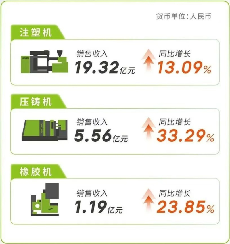 ![]() 近日(8月26日),伊之密股份有限公司(簡稱“伊之密”)發布2025年上半年業績報告。報告顯示,受益于“雙碳”政策推動下綠色制造與智能制造的加速落地,以及新能源汽車、家電、包裝等下游行業的持續回暖,公司經營業績實現穩健增長。 報告期內,伊之密持續推進“數智高效、全球運營、綠色發展”三大戰略方向,推動壓鑄機、注塑機、橡膠機等核心產品向高端化、智能化、綠色化轉型升級。同時,通過優化供應鏈管理,有效降低生產與運營成本,顯著提升生產效率。伴隨全球化戰略的深入實施,海外市場拓展取得突破,公司綜合競爭力持續增強。 營收凈利雙增長,整體發展勢頭良好 2025年上半年,伊之密實現營業總收入27.46億元,同比增長15.89%。增長主要得益于行業景氣度企穩回升,公司堅定推進戰略落地,持續提升運營效率,加大市場開拓力度,并不斷推出新產品,行業競爭力穩步提升,市場份額進一步擴大,整體收入保持較快增長。 公司凈利潤達3.45億元,同比增長15.15%。利潤增長主要源于營業收入的提升,以及全球化戰略加速推進下,公司在銷售、研發、管理等方面資源投入的有效轉化,市場競爭力持續增強。 三大主業協同發展,均實現顯著增長 作為專注于高分子材料及金屬成型領域的領先企業,伊之密堅持壓鑄機、注塑機、橡膠機三大業務協同發展,上半年各板塊均取得積極成果。