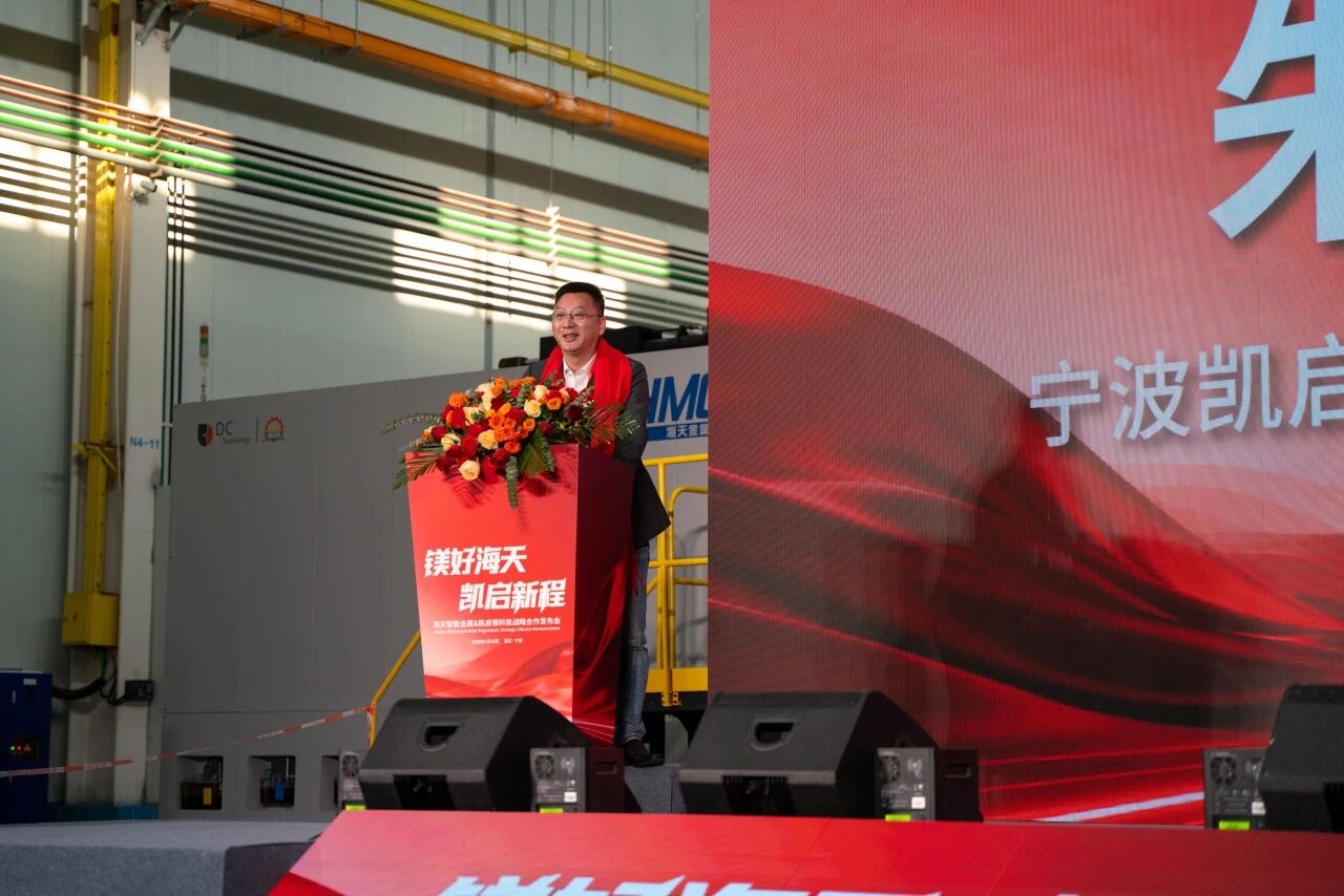 簽約儀式上,海天集團總裁張斌發表致辭,他表示,海天智勝金屬始終秉持“開放協同、發展共贏”理念,與凱啟鎂科技的合作,是海天深耕鎂合金產業、構建完整產業鏈生態的重要舉措,未來海天將持續以高端裝備賦能產業升級,與合作伙伴攜手推動中國鎂合金產業向更高端、更綠色、更智能的方向邁進。