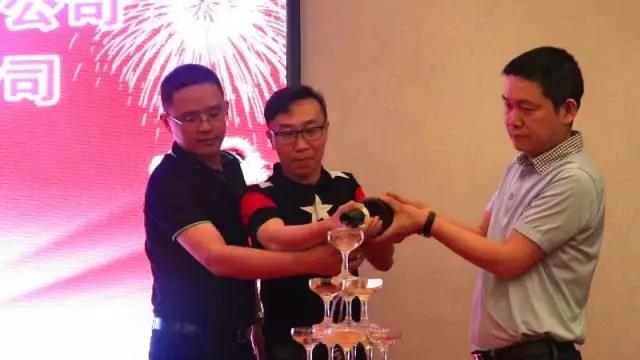 開香檳慶祝,寧波海天金屬總經理樂曉東先生(右1)、銷售總經理洪劍文先生(左1),廣東海塑金屬董事長王賢斌先生(中) 王賢斌先生還表示:“目前,新組建的公司團隊既有經驗豐富、技能卓越的應用型人才,又有敢于拼博、充滿信心的銷售型人才。公司更有一套完整的人才任用、分享共贏制度。”他相信,廣東團隊一定能齊心協力、不負眾望,為廣大客戶帶來高性價比的產品和優質的服務,也給總公司帶來滿意的銷售業績。同時,王總也希望行業內有志之士能加盟海塑金屬公司。 致辭結束后,與會的主要領導登臺進行了簡單而隆重的剪彩儀式,與會嘉賓還參觀了新裝修的海塑金屬公司辦公室和展示廳,觀看了現場展示的一臺HDC300冷室壓鑄機。隨后,東道主設豐盛的午宴招待各位來賓。 |