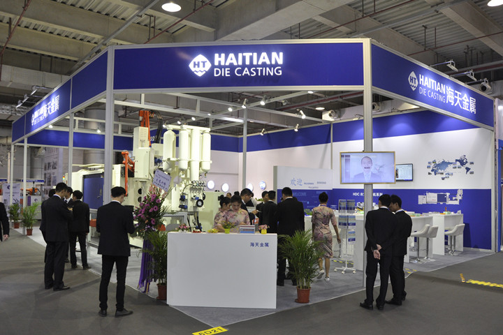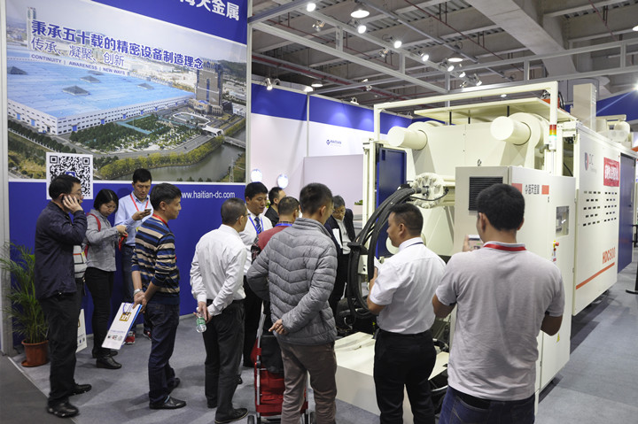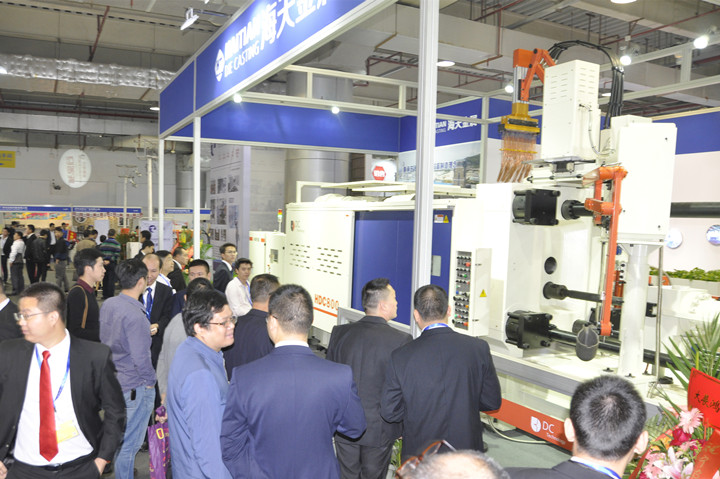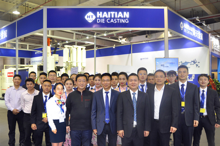 ![]() 海天金屬參加本次鑄業(yè)展的領導及技術銷售團隊 經(jīng)過多年的發(fā)展,國際(東莞)鑄業(yè)展(IMCS)已成長為華南地區(qū)最大的壓鑄專業(yè)展會,成為業(yè)內(nèi)企業(yè)開拓和經(jīng)營華南尤其廣東市場的最重要平臺之一。作為國際加工機械巨頭海天集團全資子公司(第五產(chǎn)業(yè))、壓鑄機領域的新銳企業(yè),寧波海天金屬成型設備有限公司(“海天金屬”)在廣東市場已有近兩年的經(jīng)營,此次系其首次亮相IMCS。 海天HDC系列壓鑄機自今年3月推出市場以來,憑借著“可靠、耐用”的產(chǎn)品性能和優(yōu)質(zhì)的服務,以及海天品牌的強大知名度,迅速獲得了市場和客戶的認可,取得了驕人的成績。本次展會,海天金屬攜一套以HDC800-SF伺服冷室壓鑄機為主機的自動化壓鑄單元出展。海天金屬華南區(qū)域20多人銷售及服務團隊與海天金屬寧波總部的營銷、應用部門同仁相互配合,為國內(nèi)外專業(yè)觀眾與買家提供現(xiàn)場講解和服務。