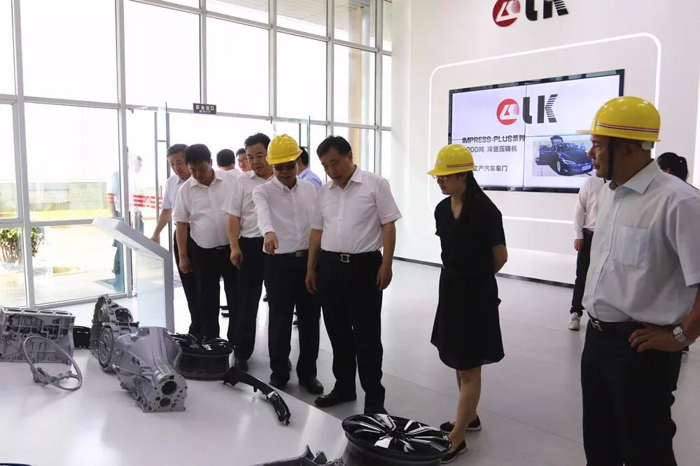 與會領導和嘉賓合影 據介紹,江蘇南通市現已成為我國主要的壓鑄產業聚集區,通過大力建設完善的壓鑄配套產業,出臺優惠的企業投資政策,吸引了包括廣東鴻圖南通壓鑄有限公司、廣東鴻泰南通精機科技有限公司、雄邦壓鑄(南通)有限公司、旭東汽車零部件制造(南通)有限公司、南通宏德機電有限公司、南通鴻勁金屬鋁業有限公司等國內知名壓鑄產業鏈企業投資建廠。南通高新區亦被中國鑄造協會認定為“中國壓鑄產業基地”。 力勁集團系全球知名的壓鑄機制造商,并在全球設有多個壓鑄機生產基地,擁有先進的生產制造工藝和齊全的壓鑄機產品線,數十年來為中國壓鑄產業發展做出突出的貢獻。 隨后,陸志鵬先生一行在劉相尚及公司高層陪同下,參觀了園區、生產和裝配車間,觀摩了目前國內最大的4500T壓鑄機裝配,并在集團展廳觀看了客戶智能化生產視頻。現場的精益管理、雄厚的群加工設備和優良的生產氛圍得到了領導的高度贊譽。