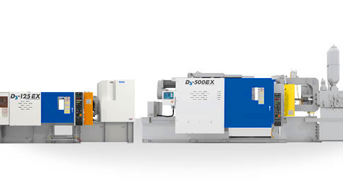 Ds-EX系列壓射機構采用電動伺服馬達與油壓伺服閥相結合,可減少卷氣的低速穩定起動機構,使用高速速度5段設定,電動伺服增壓機構,壓力-時間反饋控制,增壓5段設定。其合模機構采用全新機構使機器小型化,快速循環復合動作,高剛性合模裝置,多段頂出功能,屬于高精度、高剛性、快速循環的全電動裝置。