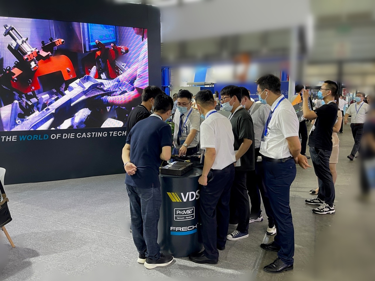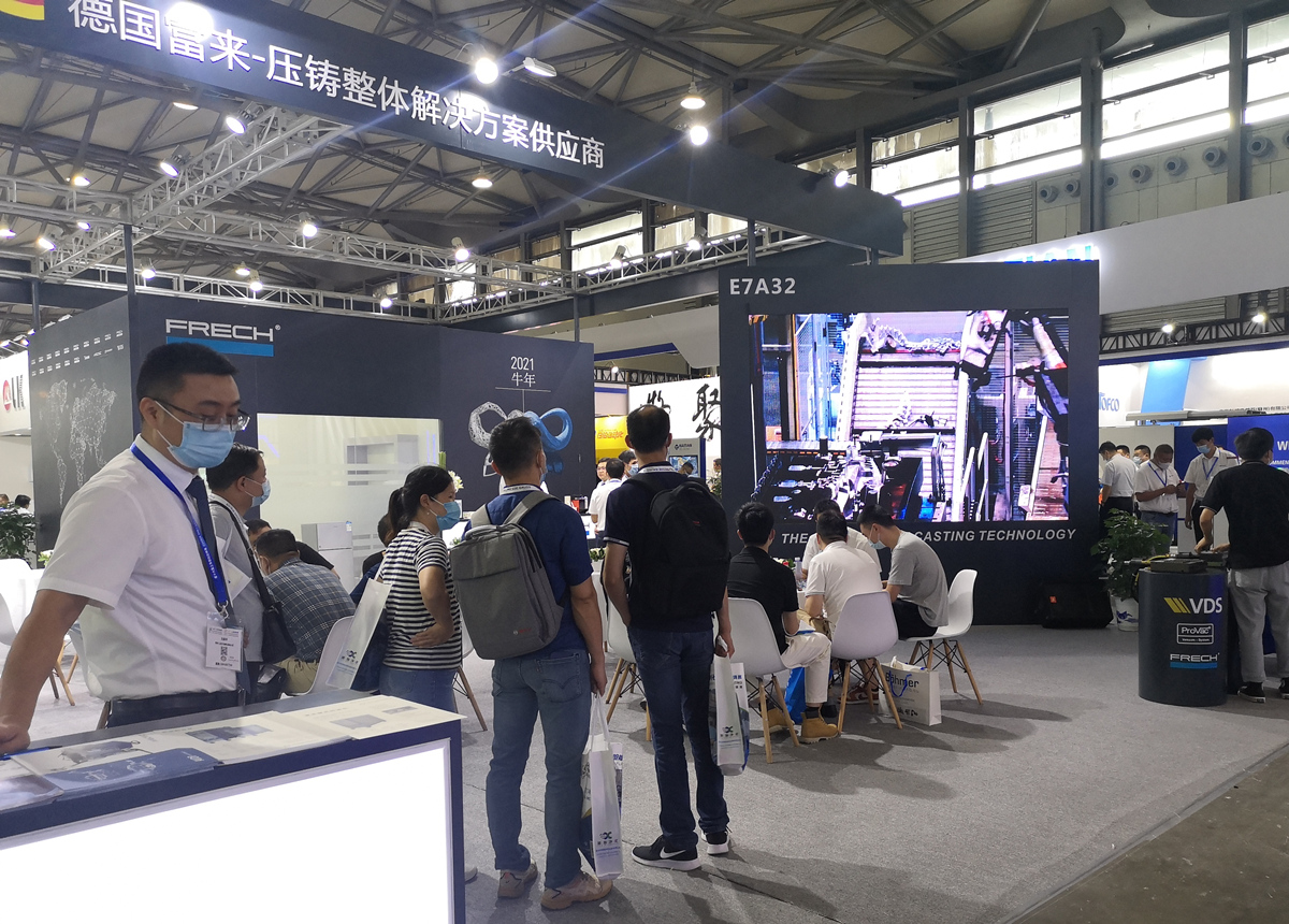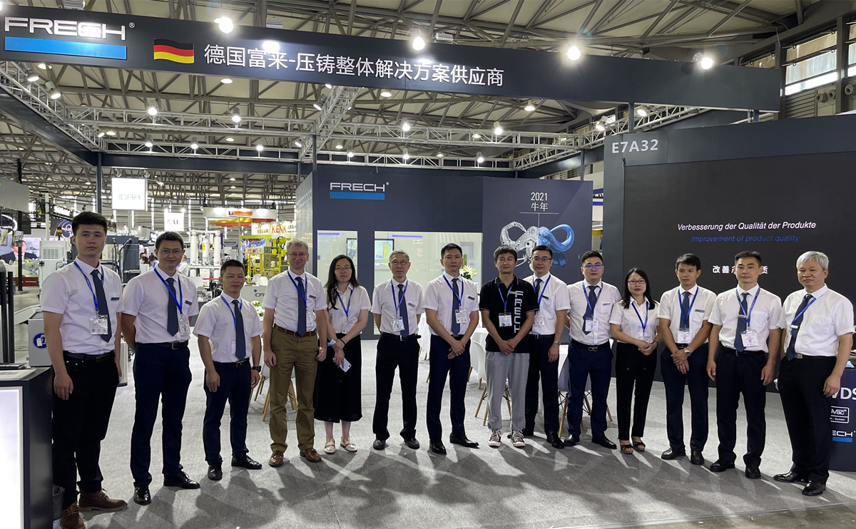 富來中國參展團(tuán)隊(duì),左四為Mr. Udo Looser 羅吾德先生 富來(上海)壓鑄機(jī)有限公司(下稱“富來中國”)是德國FRECH在中國設(shè)立的全資子公司,是一家集壓鑄機(jī)及周邊設(shè)備生產(chǎn)、銷售、服務(wù)于一體的企業(yè)。富來中國“亮相”2021上海壓鑄展,現(xiàn)場展示了配置雙槽爐的FCH-Z系列20T鋅合金壓鑄機(jī)、Robamat奧地利進(jìn)口及國產(chǎn)模溫機(jī)、以及瑞士進(jìn)口VDS真空機(jī)等產(chǎn)品,并現(xiàn)場推介其技術(shù)成熟的壓鑄自動化全面解決方案。