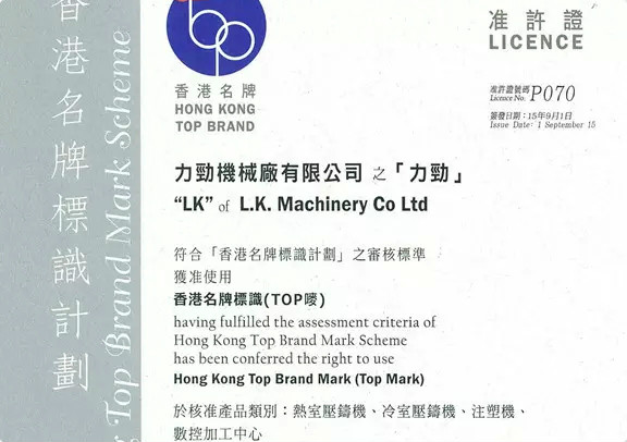 香港名牌核準產品類別包括“力勁”牌熱室壓鑄機、冷室壓鑄機、注塑機、數控加工中心(CNC加工中心)。力勁多種機械產品被認定為香港名牌可謂實至名歸。力勁壓鑄機是行業唯一中國名牌產品,力勁集團乃全球最大壓鑄機制造商。