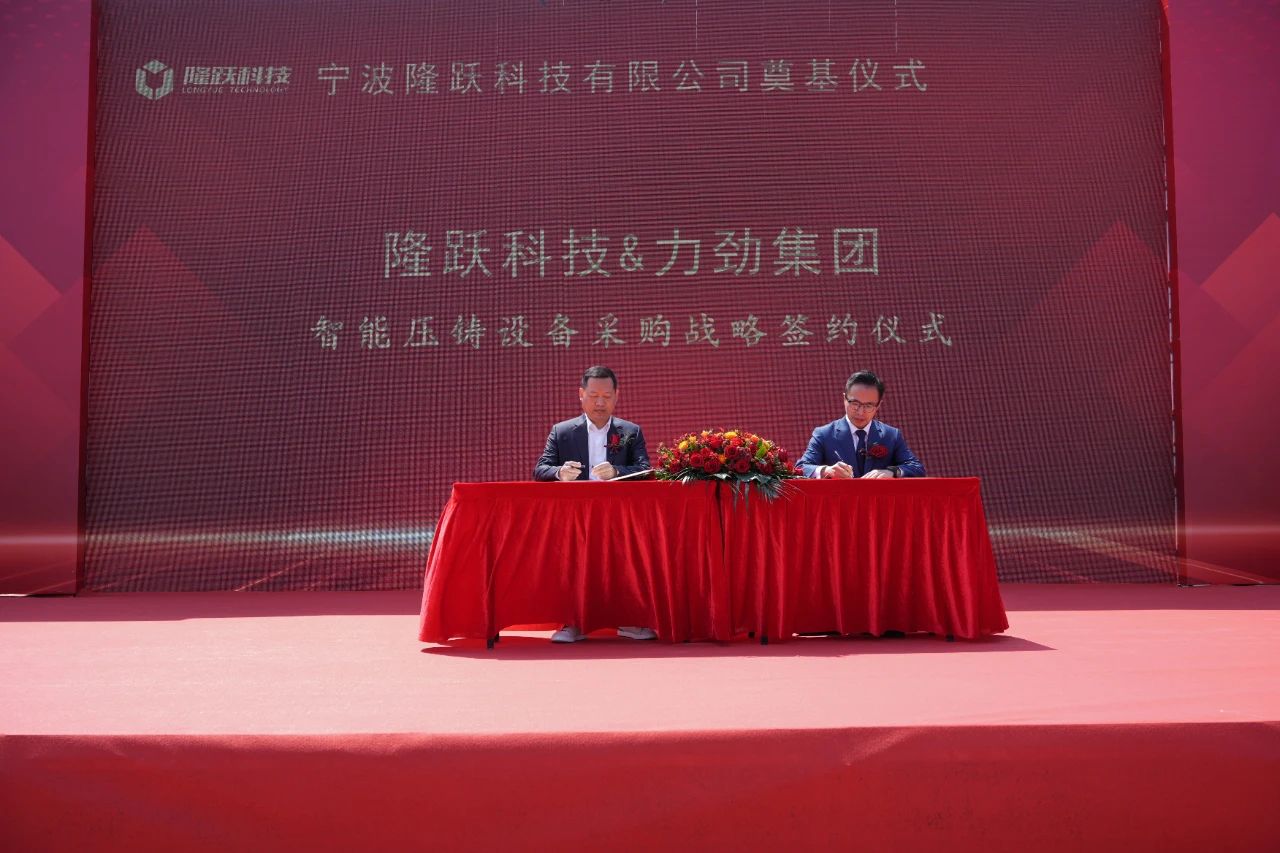 在奠基儀式上,隆躍科技攜手力勁集團舉行了智能壓鑄設備采購戰略簽約儀式。