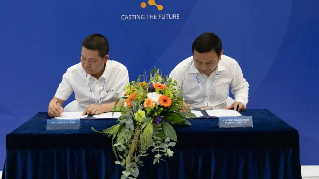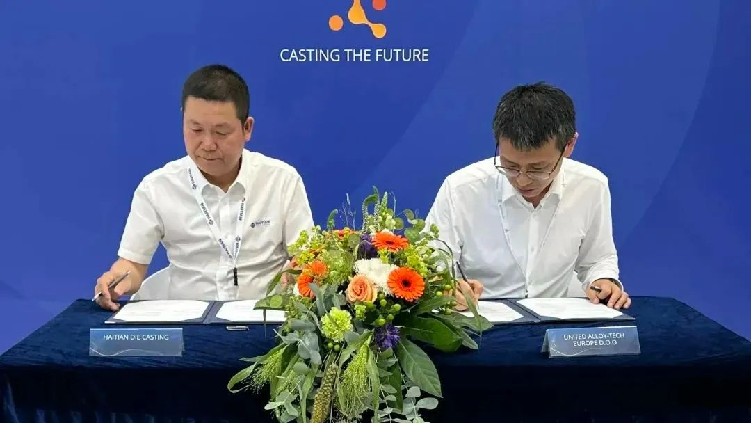 GIFA 2023,海天金屬與精確實業(UATE)、日本OKAYA & Co, LTD、美利信科技等三家國際知名企業達成戰略合作協議 據了解,精確實業是全球知名汽車零部件廠家敏實集團旗下成員,后者為全球30多個國家的60多個汽車品牌提供服務。OKAYA & Co, LTD則是一家總部位于日本的世界知名貿易公司,在長期與日本汽車制造商的合作中有著豐富的經驗。未來,海天金屬將與各方將利用市場協同效應和規?;Y源,共同開拓更廣闊的國際市場。 而海天金屬與重慶美利信科技簽署全球戰略合作協議,在GIFA這個國際舞臺向全世界宣布:雙方將聯合開發合模力20000T超大型壓鑄機,并在大型及超大型一體化壓鑄領域展開研發技術合作,實現成果共享。 ??大型及一體化壓鑄,千載難逢歷史機遇 隨著新能源汽車、汽車“輕量化”趨勢加速向前推進,一體化壓鑄正逐步被全球整車廠認可。海天金屬充分把握市場需求,先后推出7000T、8800T超大型壓鑄機,打造配套2500T、3500T大型壓鑄島和8800T超大型壓鑄島的全球應用服務中心,切實助力行業發展,填補一體化上下游產業空缺,為客戶提供全套解決方案、一體化試模等服務。