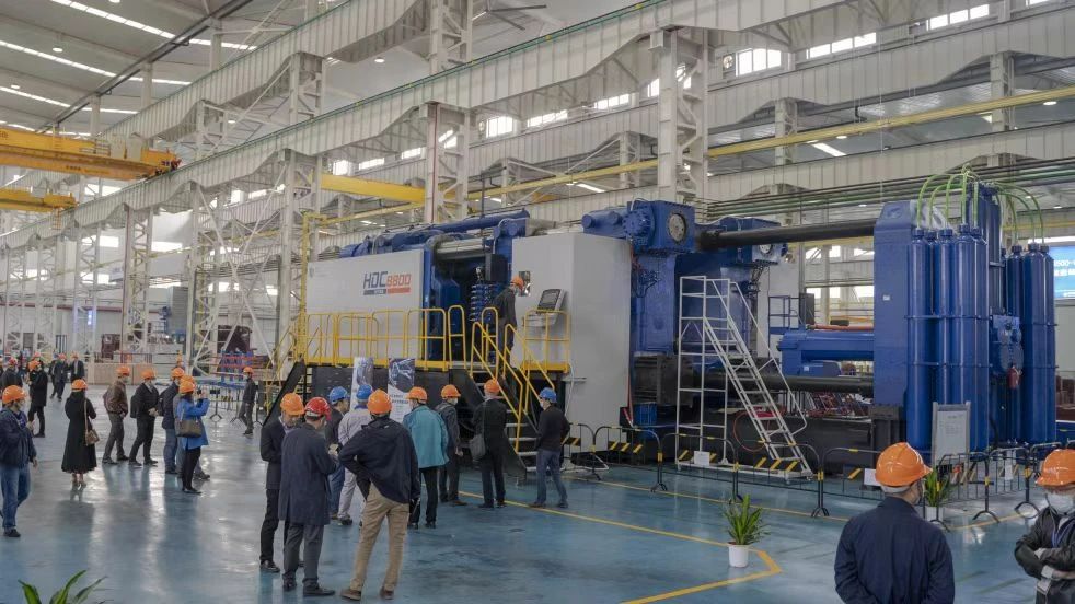 海天金屬3000T鎂合金注射成型機為大尺寸鎂合金汽車零部件提供生產解決方案 隨著“雙碳”目標的提出,輕量化在新能源汽車領域快速發展。鎂合金材料因其抗震、降噪、質輕的獨特性能,鎂合金注射成型工藝因其環保、安全可靠、產品力學性能優異等優勢,被廣泛應用于汽車/新能源汽車、3C(計算機、通訊、消費電子)、建材、軌道交通、航空航天等行業。樂曉東先生看好鎂合金材料及鎂合金注射成型工藝在工業制造尤其是汽車領域的應用前景。 樂曉東先生表示,我國是鎂資源大國,占世界鎂資源的70%以上。鎂合金是世界最輕的金屬結構材料,其密度為鋁合金的?,鋼鐵的¼,是最具潛力的輕量化金屬材料之一。“國家隊”寶鋼金屬已進入鎂合金材料領域,這將為穩定鎂價格,做大做強鎂產業鏈,起到重要推動作用。另外,鎂合金注射成型技術,相比傳統的鎂合金冷室壓鑄工藝,其無須使用高污染的SF?氣體,注射單元采用全封閉射臺,不僅更加安全,而且還更加環保。 樂曉東先生補充說,目前,鎂合金材料在汽車領域的應用仍然不多。隨著材料、設備技術逐步成熟,更大型的鎂合金成型設備的市場推廣,鎂合金材料件如顯示背板、座椅骨架、車內門板、方向盤骨架、三電系統(電機、電池、電控)殼體、前端防護架等汽車及新能源汽車上的應用將會越來越來,在汽車上的滲透率必將得到質的提升。鎂合金材料大有可為! ??雙管齊下戰略,放眼全球市場 疫情三年,海天金屬并未放慢發展步伐,不僅努力推進業務多元化,還在國內、國外市場拓展方面均有所建樹。 日前(5月27日),海天金屬(含山)應用服務中心正式開業。海天金屬(含山)應用服務中心位于安徽省綠色智能鑄造特色產業集群基地,占地面積超2000平方米,擁有設備展廳、產品配件庫、培訓教室等配套設施,集銷售、服務、培訓、辦公等多重功能于一體。