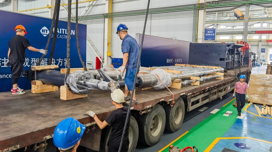 HMG3000出運(yùn)現(xiàn)場(chǎng) HMG3000創(chuàng)新 突破界限 HMG3000是海天金屬今年5月份發(fā)布的一款重磅機(jī)型,同時(shí)也是全球最大的鎂合金注射成型機(jī)。在海天金屬的聯(lián)合開(kāi)發(fā)與自主創(chuàng)新的雙引擎驅(qū)動(dòng)下,在性能、效率、穩(wěn)定性和安全性等方面樹(shù)立了更高的標(biāo)準(zhǔn)。該機(jī)型的問(wèn)世為鎂合金注射成型技術(shù)帶來(lái)了巨大的突破。 該設(shè)備擁有行業(yè)領(lǐng)域內(nèi)最大的螺桿,直徑可達(dá)到150mm,其理論鎂合金注射量超過(guò)10kg,且鎖模力高達(dá)30000KN。同時(shí),該機(jī)型搭載先進(jìn)的注射雙伺服實(shí)時(shí)閉環(huán)控制技術(shù),可為大尺寸鎂合金材質(zhì)的多聯(lián)屏顯示背板、座椅骨架等產(chǎn)品提供了優(yōu)質(zhì)的成型解決方案。