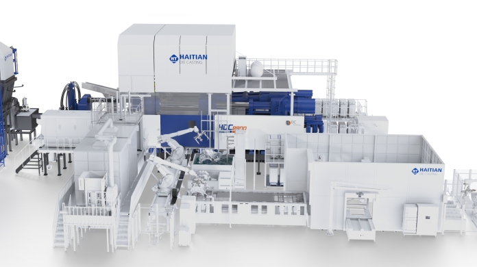 金屬HDC系列超大型壓鑄機(jī)(鎖模力>60000kN),以HDC8800為例整機(jī)重量超過700噸,配置領(lǐng)先的雙閉環(huán)全實時控制壓射技術(shù),高效、強(qiáng)勁的三模板合模技術(shù)以及智能KEBA控制系統(tǒng),可完美匹配復(fù)雜的一體化壓鑄成型工藝。目前,超過10臺海天金屬超大型壓鑄機(jī)已入駐客戶企業(yè)。