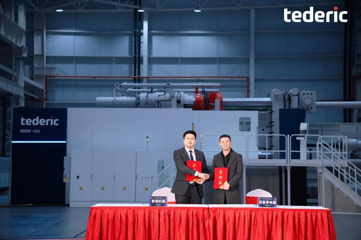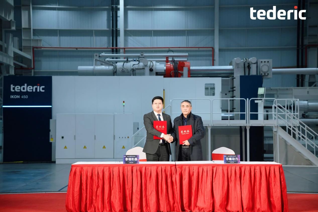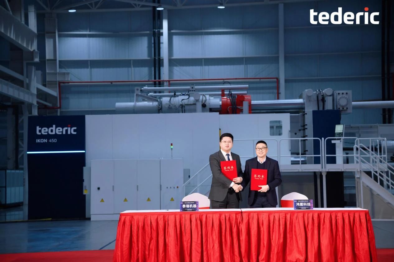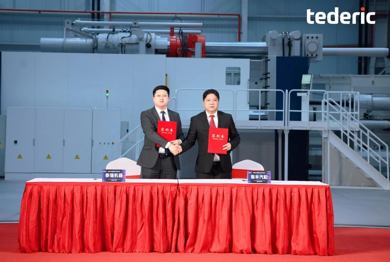 泰瑞IKON450大型三板直壓式壓鑄機(jī) 03 戰(zhàn)略合作發(fā)力汽車部件一體化壓鑄賽道 首臺IKON成功交付 據(jù)悉,本次發(fā)布會,泰瑞與太倉南豐汽車零部件有限公司、營口華峰動力發(fā)展股份有限公司、珠海市潤星泰電器有限公司、廣東鴻圖科技股份有限公司簽訂戰(zhàn)略合作協(xié)議。其中,本次戰(zhàn)略簽約涵蓋9000噸以上超大型壓鑄島的合作。