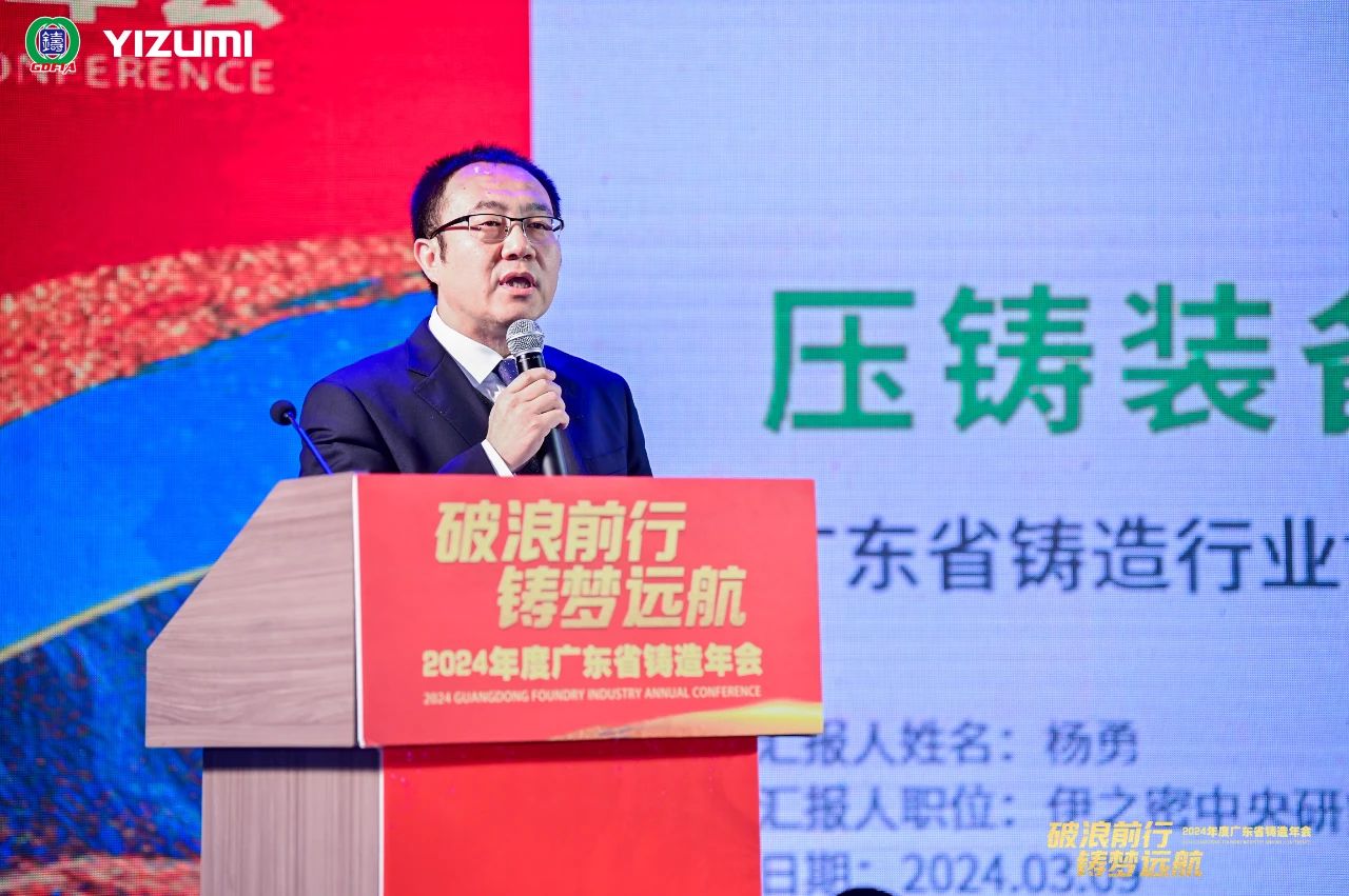 在參觀過程中,嘉賓們對壓鑄產業的前沿技術有了更深入的了解,還對伊之密在技術創新、產品研發以及市場拓展等方面的努力和成果表示高度贊賞。 聚焦前沿 共話壓鑄產業的創新路徑 當天下午,伊之密股份有限公司中央研究院執行院長楊勇博士、伊之密股份有限公司壓鑄機事業部半固態市場經理陳勇先生分別受邀參加廣鑄協年會開幕式及學術交流論壇,并在會上分別做主旨報告和專題報告。 ? 楊勇 伊之密股份有限公司中央研究院執行院長 《壓鑄裝備企業創新體系建設實踐》 當今時代,技術創新是企業核心競爭力的重要來源。為確保創新可持續、常態化和成功率,企業需要建立、實施、保持現代創新管理體系。對此,伊之密股份有限公司中央研究院執行院長楊勇博士帶來《壓鑄裝備企業創新體系建設實踐》的主旨報告。