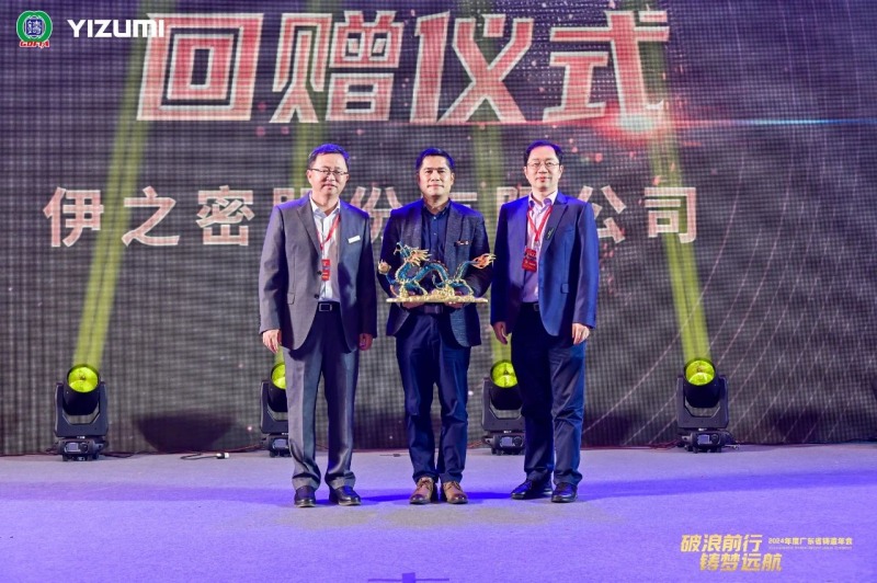 他表示:“創新對一個國家、一個民族來說,是發展進步的靈魂和不竭動力,對于企業來講,是尋找生機和出路的必要條件。未來,我將帶領團隊立足于伊之密的戰略發展規劃,特別在‘高端化、數智化、綠色化’方面不斷研發與掌握國際領先的關鍵核心技術,從而提升產品核心競爭力,助力伊之密成為成型裝備領域的世界級企業,為壓鑄行業注入源源不斷的發展動力,讓整個行業的發展更上一層樓!” 晚宴上,還舉行了贊助單位回贈儀式,作為答謝晚宴冠名贊助單位,伊之密獲贈精美工藝品。這些禮品的頒發不僅是對贊助單位的肯定,更是對整個行業未來發展的期許。