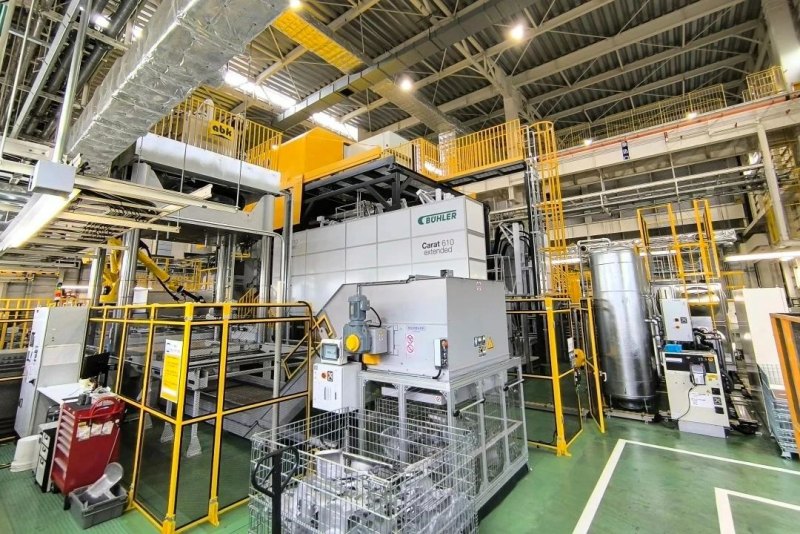 宇部9000T超大型壓鑄機(效果圖)圖源:宇部興產(chǎn)機械 日本宇部的機械業(yè)務子公司宇部興產(chǎn)機械(UBE Machinery)于2024年8月開發(fā)了鎖模力9000噸的壓鑄機,并從豐田獲得了訂單。該公司將向豐田上鄉(xiāng)工廠供貨,并計劃在田原工廠進一步設置。宇部興產(chǎn)機械于2022年啟動銷售時的設備為6500噸,該機型已獲得日本利優(yōu)比的訂單并計劃于本月交付。 與此同時,本田汽車日本工廠已引進一套布勒6100T超大型壓鑄機,用于一體化壓鑄技術(shù)及產(chǎn)品應用開發(fā)。