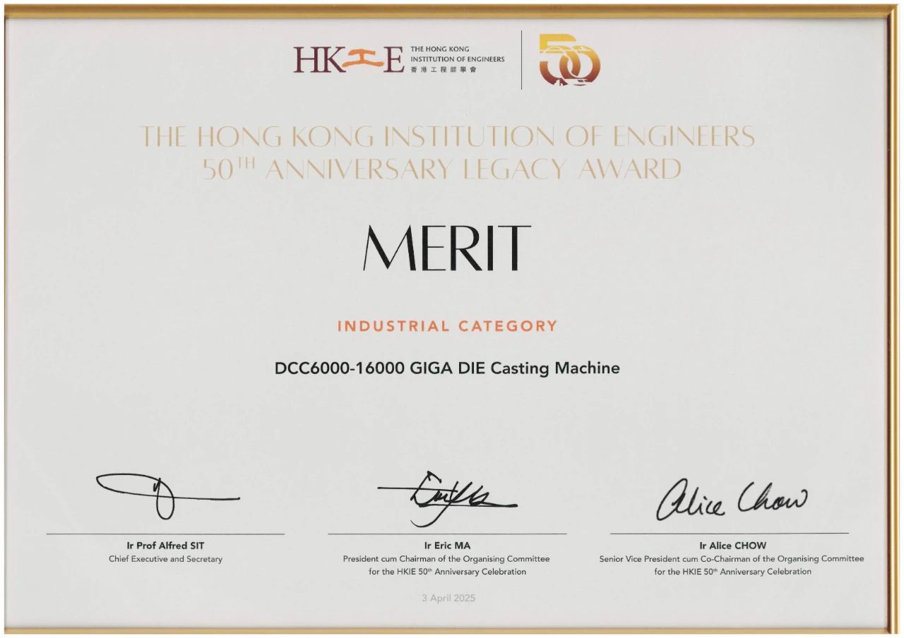 大會頒發(fā)了香港工程師學會(HKIE)50周年傳奇大獎。力勁DCC6000-DCC16000超大型壓鑄機榮獲“香港工程師學會50周年傳奇大獎——優(yōu)異獎(工業(yè)類)”。