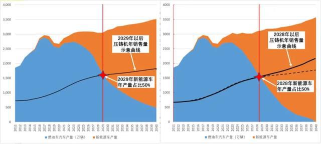 根據壓鑄件年產量與汽車年產量的對照曲線判斷壓鑄產業發展與汽車產業發展呈高度正相關,未來汽車行業的發展對壓鑄機制造行業的發展具有決定性的影響。