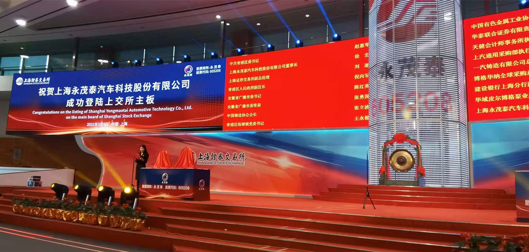 上海永茂泰汽車科技股份有限公司(證券簡稱:永茂泰,證券代碼:605208),今日在上海證券交易所掛牌上市。