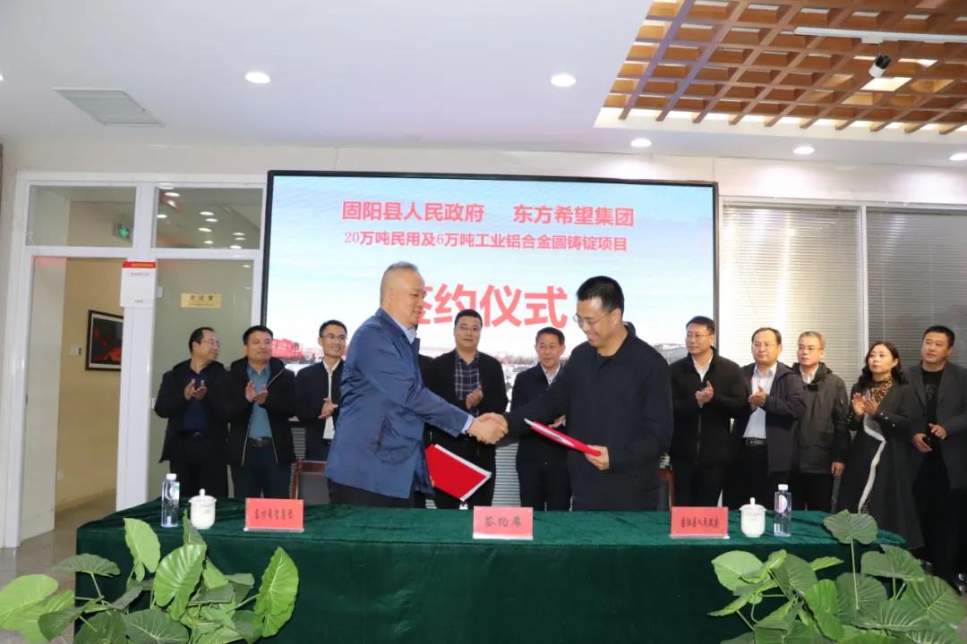 11月6日,東方希望集團與包頭市固陽縣政府簽署“20萬噸民用及6萬噸工業(yè)鋁合金圓鑄錠項目”投資協(xié)議。