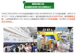 CHINA DIECASTING 2019中國壓鑄展和CHINA NONFERROUS 2019中國有色展,將于2019年7月17-19日在上海新國際博覽中心舉行。