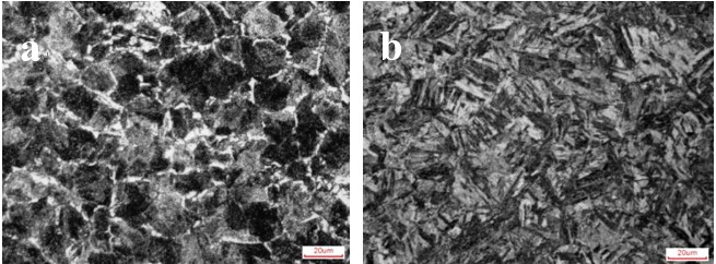 經(jīng)過淬回火后實驗鋼由模具供貨態(tài)的片狀珠光體和網(wǎng)狀鐵素體組織轉變?yōu)榛鼗瘃R氏體和少量殘留奧氏體組織,且抗拉強度和硬度顯著增加。