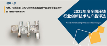 廈門格耐爾科技有限公司的“可焊、可熱處理(540℃x8H)高性能優(yōu)質(zhì)半固態(tài)鋁合金壓鑄件”的創(chuàng)新獎申報已經(jīng)通過活動組委會初審,為保障公信力,接受全行業(yè)監(jiān)督,現(xiàn)進入公示階段。