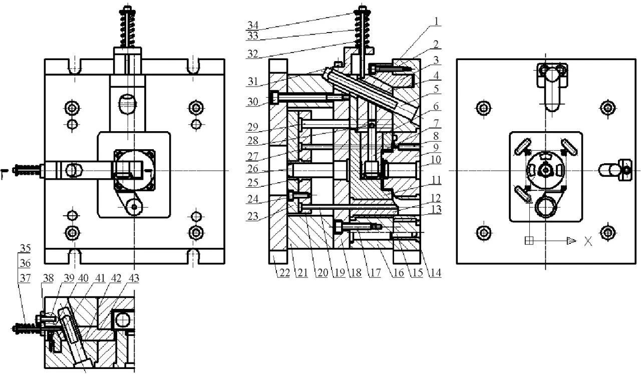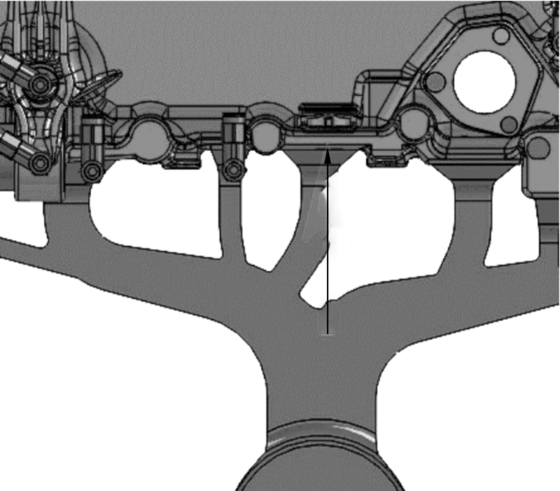 本文通過采用油缸配合彎銷機構實現垂直方向抽芯的方式,優化了泄油塞處的鑄件結構。