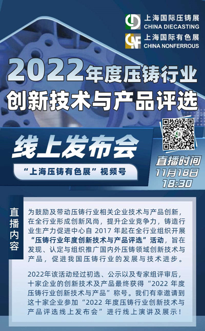 “2022年度壓鑄行業創新技術與產品”線上發布會