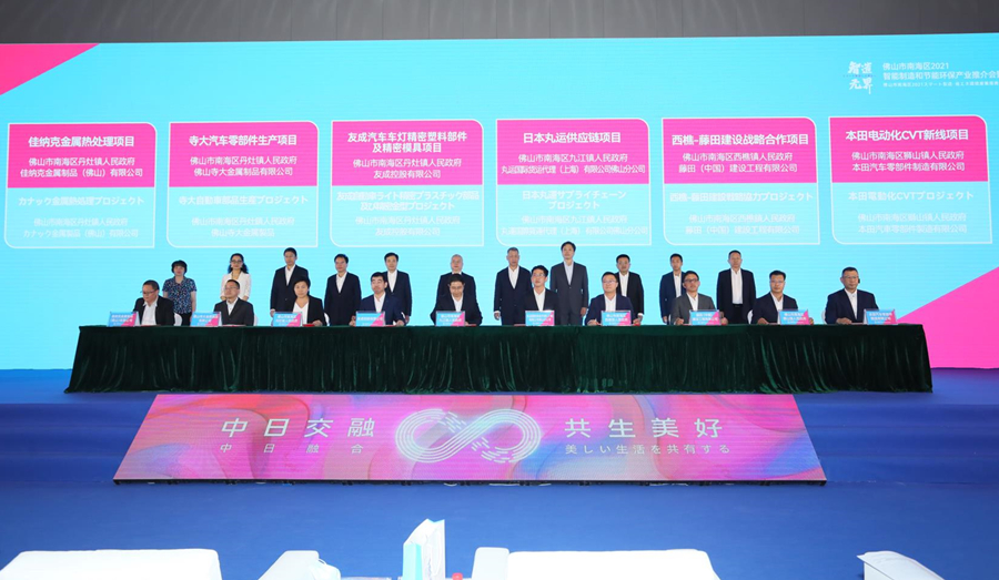 在廣東省佛山市南海區舉行的2021中日企業對接會上,大連寺大汽車配件有限公司投資的寺大汽車零部件生產項目簽約落戶南海區。