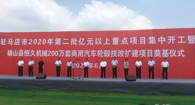 6月29日,駐馬店市2020年第二批重點項目集中開工,其中主會場開工項目的確山縣恒久機械200萬套商用汽車輪轂技改擴建項目,由駐馬店恒久機械制造有限公司投資15億元建設。