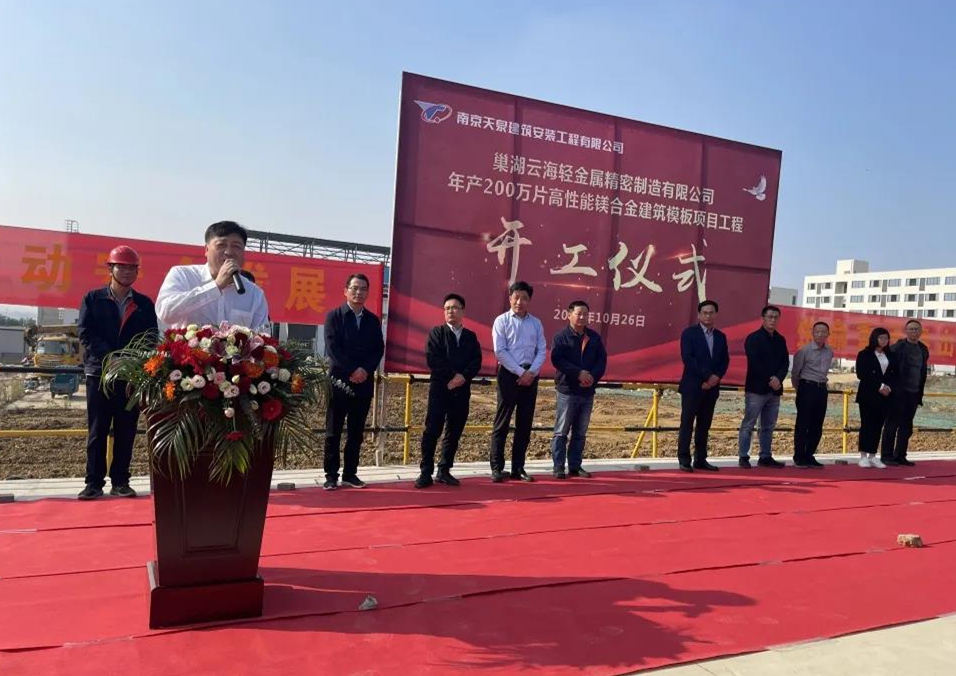 10月26日,巢湖云海輕金屬精密制造有限公司投資的年產200萬片高性能鎂合金(壓鑄)建筑模板項目開工儀式,在巢湖云海鎂業有限公司廠區內舉行。