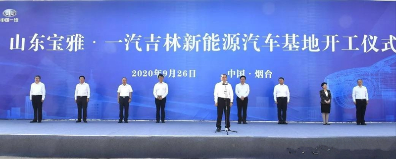 9月26日,山東寶雅·一汽吉林新能源汽車基地開工儀式在煙臺開發區舉行。