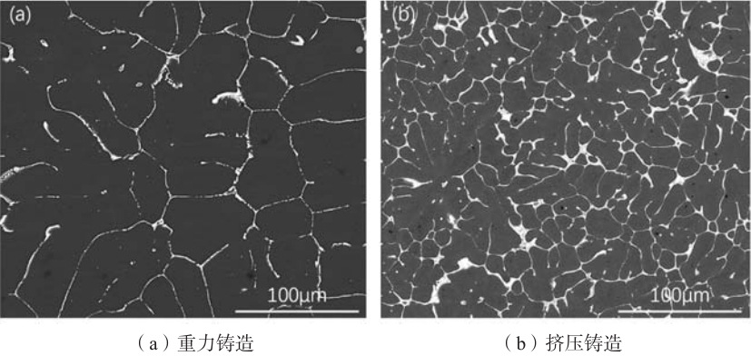 擠壓鑄造工藝使液態(tài)金屬在高壓下成形、凝固或伴有微量塑性變形,可消除鑄件內(nèi)部縮孔、疏松等缺陷,使鑄件組織細密,可通過熱處理大幅提高鑄件力學性能,接近或相當于模鍛件水平,具有良好的應用前景。