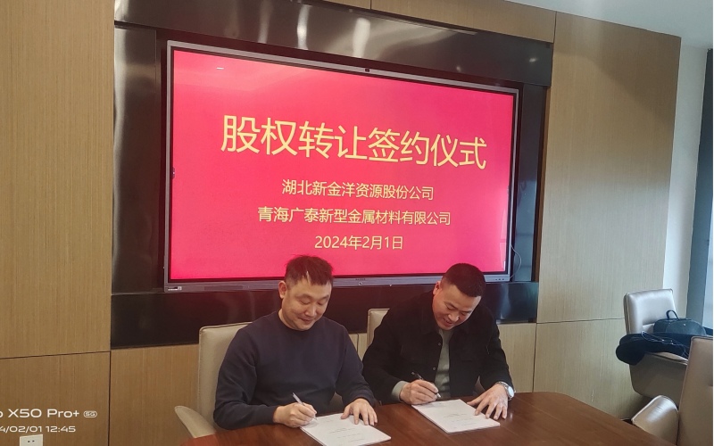 湖北新金洋資源股份公司于2月1日簽訂收購青海廣泰新型金屬材料有限公司100%股權(quán)合同,并進入托管期。