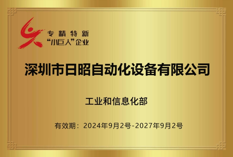深圳市日昭自動(dòng)化設(shè)備有限公司被認(rèn)定為工信部第六批專精特新“小巨人”企業(yè)。