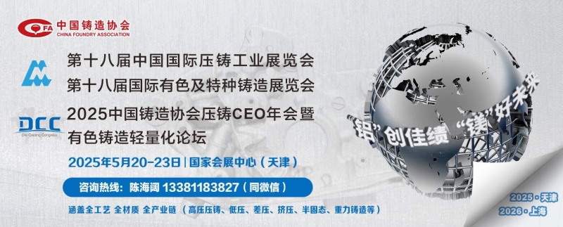 由中國鑄造協(xié)會主辦的“第十八屆中國國際壓鑄工業(yè)展覽會”“第十八屆國際有色及特種鑄造展覽會”(中國國際壓鑄&有色展)將于2025年5月20-23日在天津國家會展中心隆重舉辦,與“第二十三屆中國國際鑄造博覽會”同期舉辦。...