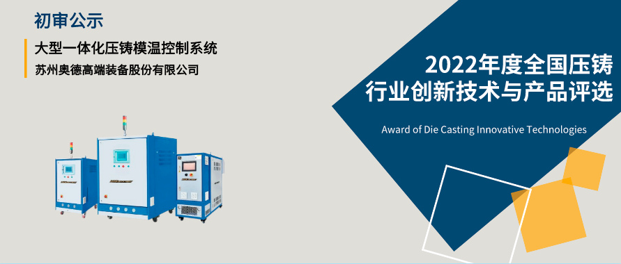 蘇州奧德高端裝備股份有限公司的“大型一體化壓鑄模溫控制系統(tǒng)”的創(chuàng)新獎申報已經(jīng)通過活動組委會初審。