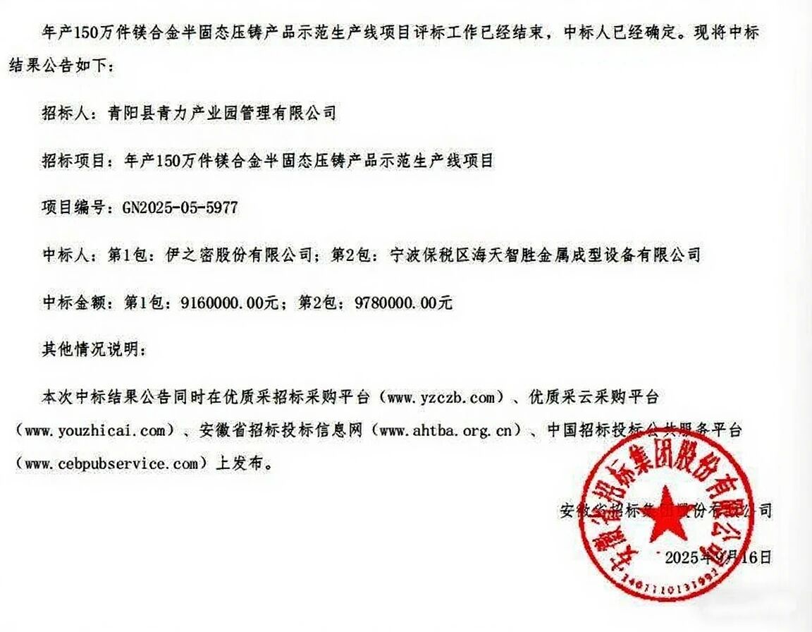 愛爾思輕量化鎂合金一體化壓鑄項目簽約蚌埠;寶武鎂業已成立機器人業務工作小組;塞進系統越南工廠訂購2臺1.2萬噸壓鑄機;嶸泰股份墨西哥工廠實現盈利。